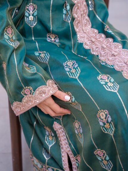 تتميز هذه القطع بتناغم لوني فريد، من الأرجواني الملكي إلى الأخضر الزمردي، مع حزام مغربي مشغول بدقة ليعزز جمالية الخصر ويضفي مسحة من الهيبة والأناقة. ولأننا نؤمن بأنكِ سيدة متفردة، فإن كل موديل في هذه الصور متوفر بـ “قطعة واحدة فقط”، لضمان أن تكوني أنتِ وحدكِ صاحبة الإطلالة الاستثنائية.