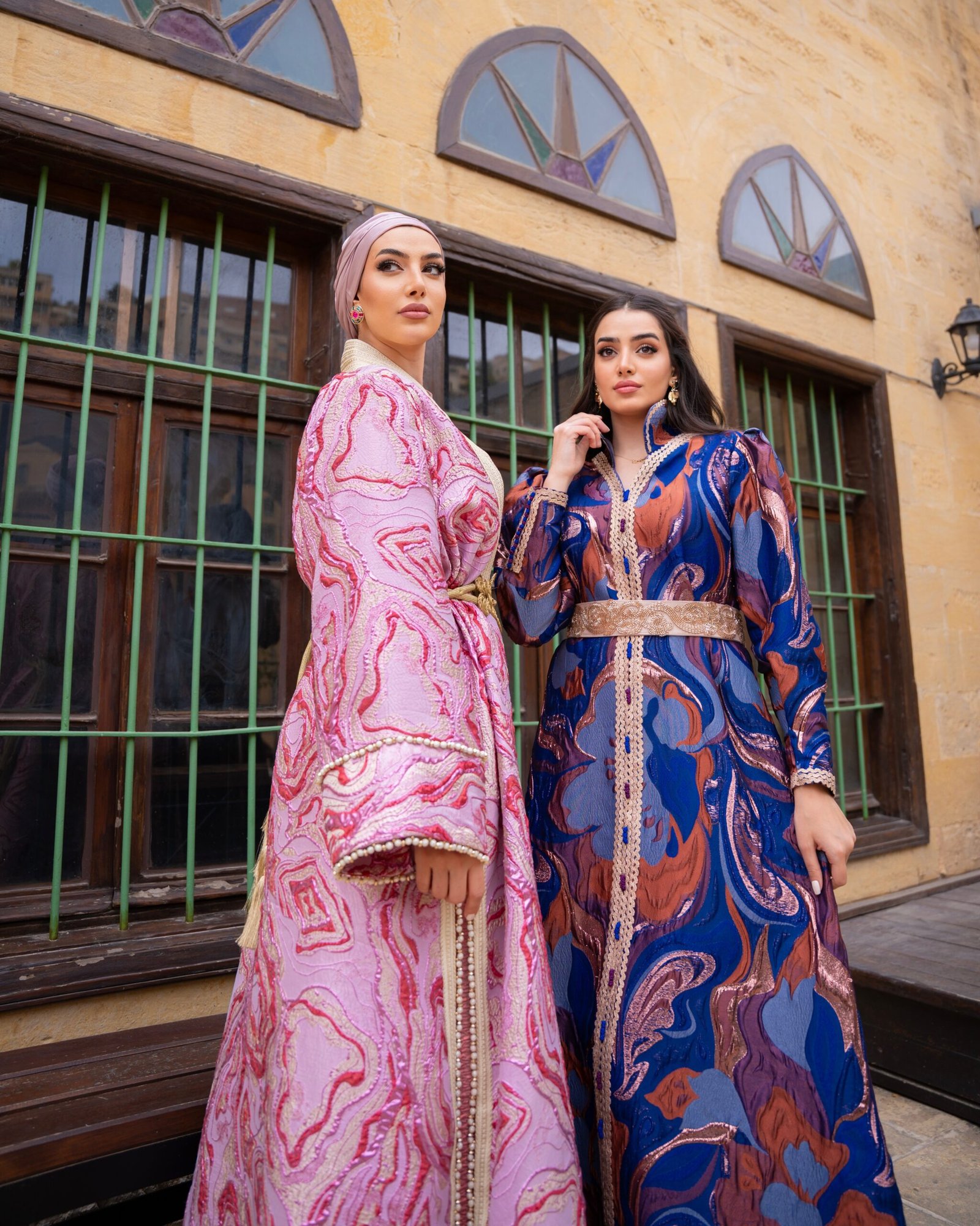 من خامة “البروكار التركي” الفاخرة التي تحاكي فخامة القصور، أبدعت أنامل مصممتنا الأردنية في صياغة هذا القفطان الراقي. صُمم بعناية فائقة ليجمع بين الهيبة، الأناقة، والحضور اللافت الذي يخطف الأنفاس من أول نظرة.