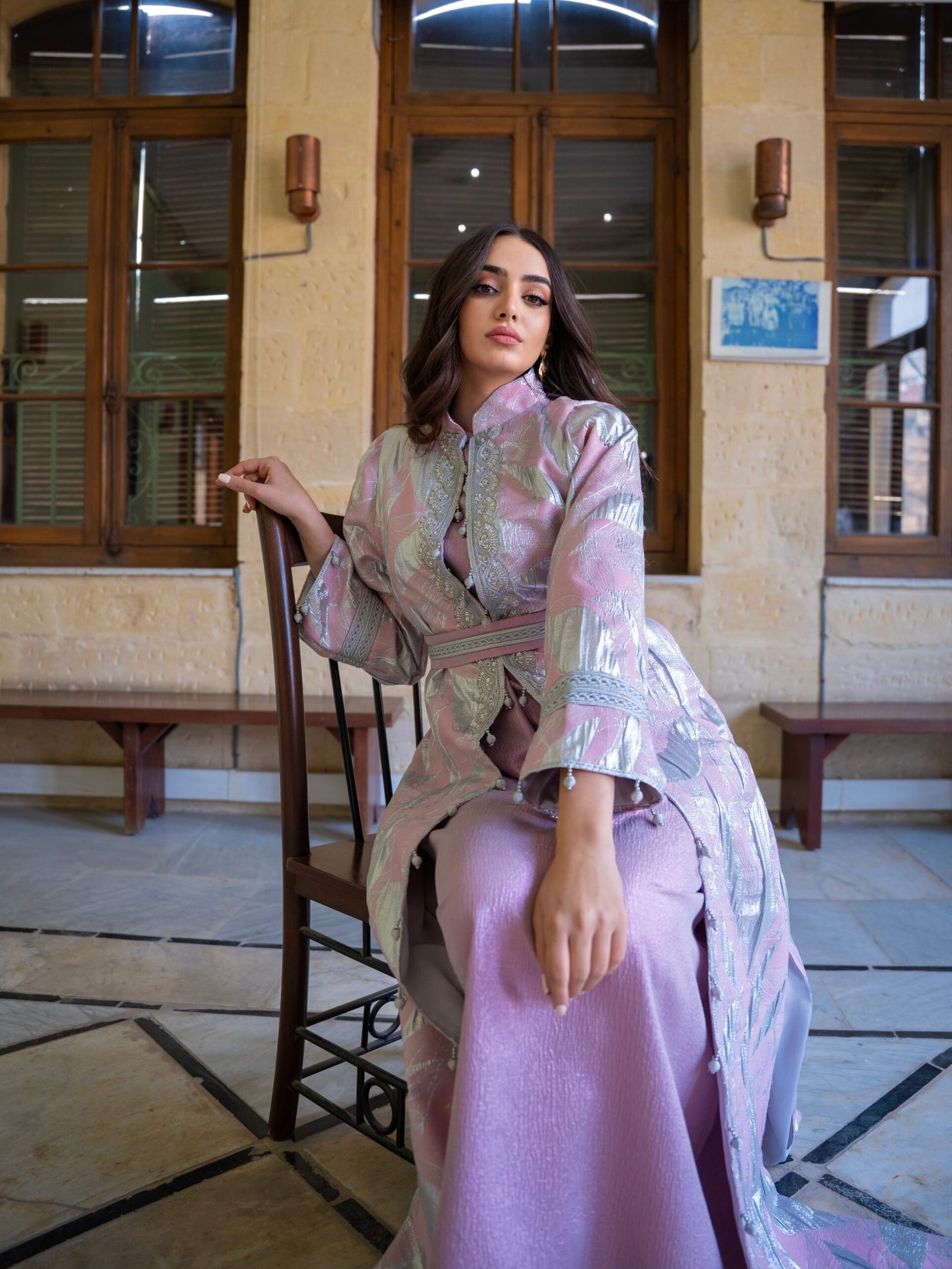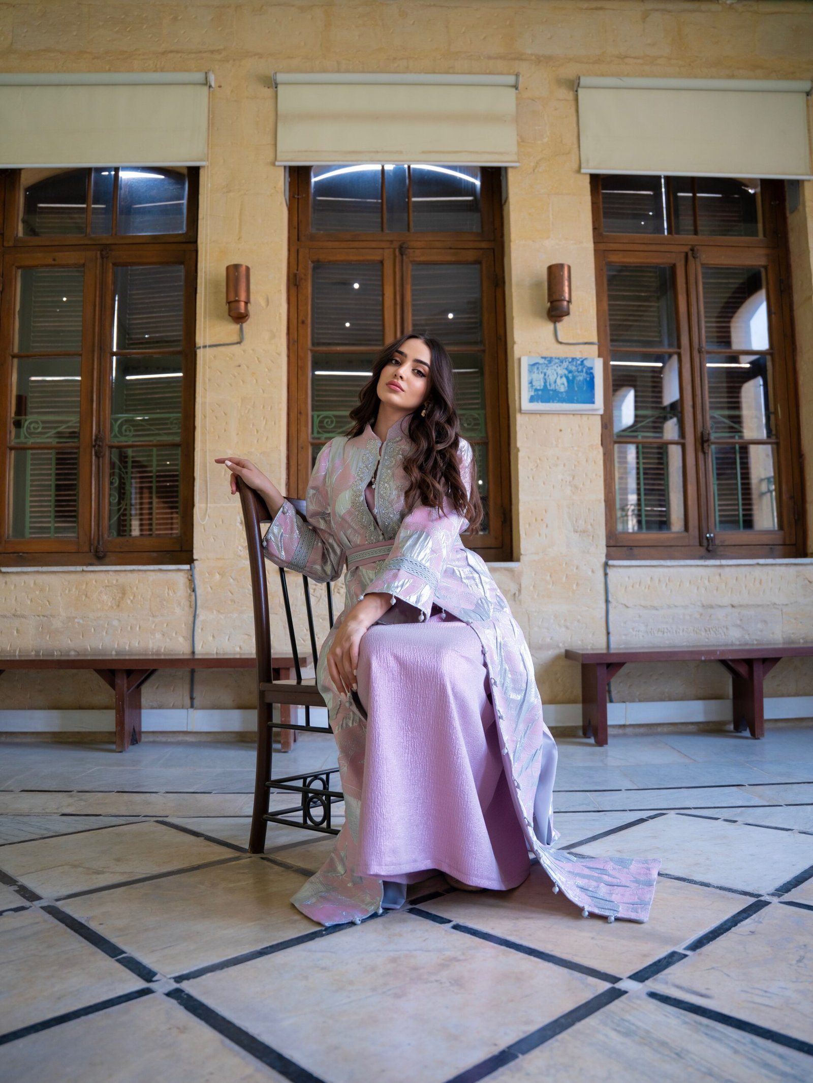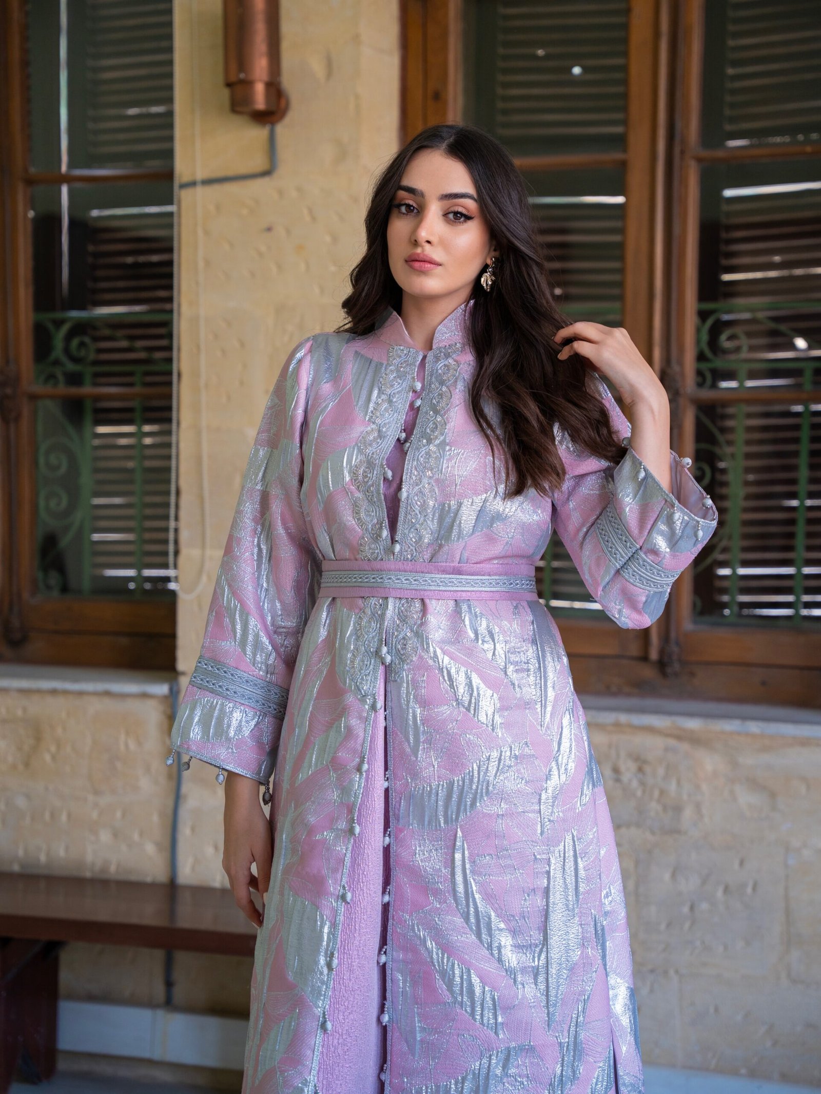 من إبداع أنامل مصممتنا الأردنية، صُمم هذا القفطان من قماش فاخر بنقوش بارزة تمنحه طابعاً أرستقراطياً فريداً. يتميز بقصة واسعة تمنحكِ حضوراً مهيباً، مع حزام مطرز يتوسطه بروش ذهبي يزيد من فخامة الطلّة. قطعة واحدة فقط صُنعت بعناية لمن تبحث عن الأناقة التي لا تغيب عن البال