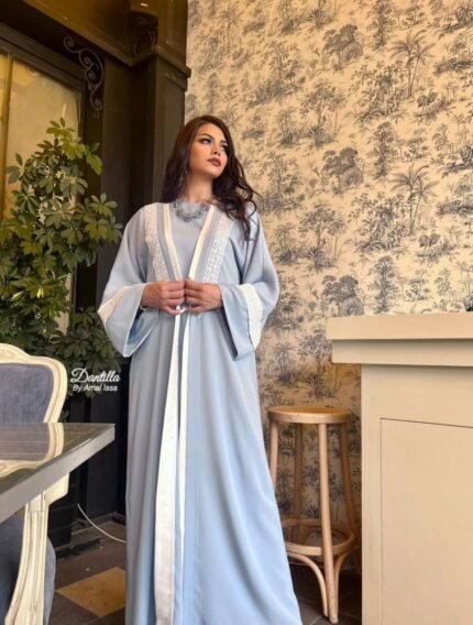 عباية بتصميم ناعم وقصة انسيابية مع كلف مغربية أنيقة تمنح إطلالة راقية ومريحة للاستخدام اليومي والمشاوير الراقية.